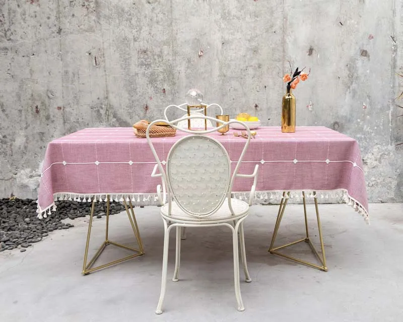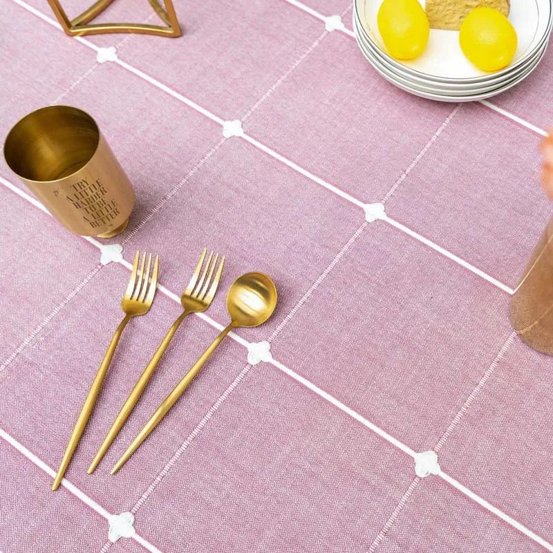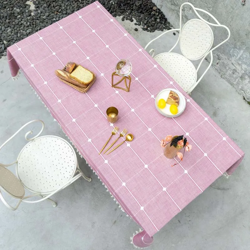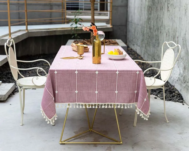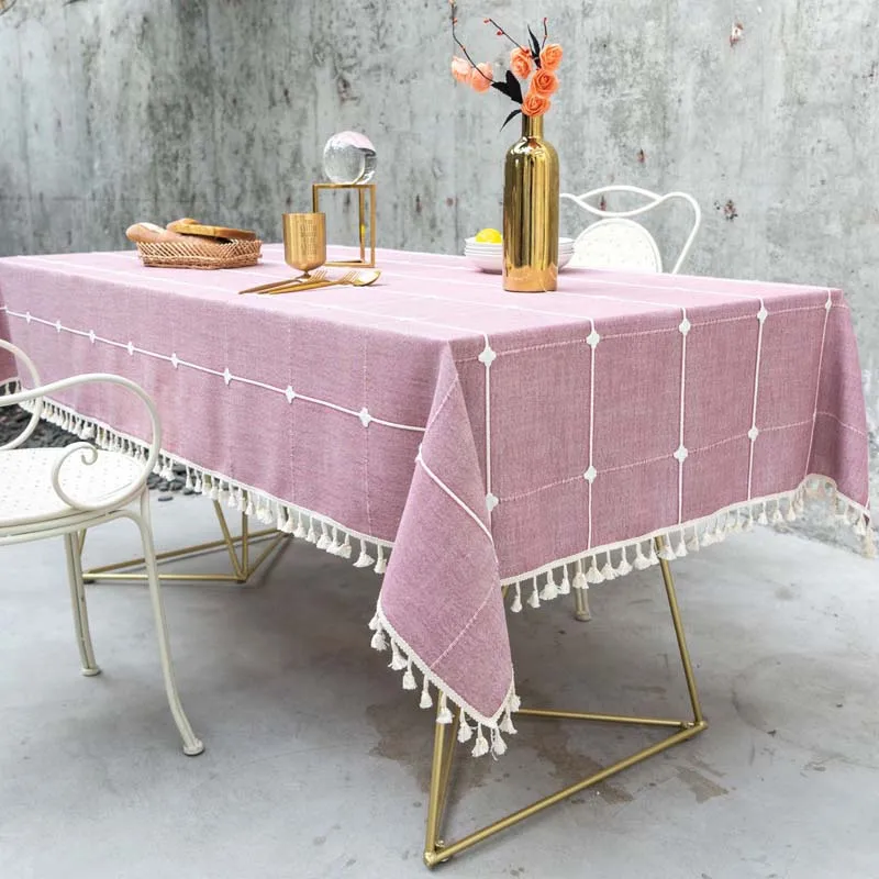 Розовая вышитая жаккардовая решетка прямоугольная/Рождественская скатерть из хлопка и льна покрытие для стола украшение большой Банкетная скатерть