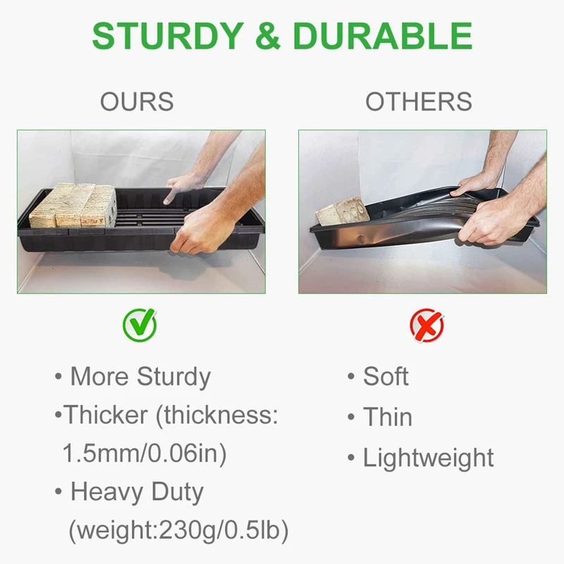 Нет отверстий-разработан без дренажных отверстий в нижней части, эти подносы будут держать много воды и питательных веществ для роста ваших растений.