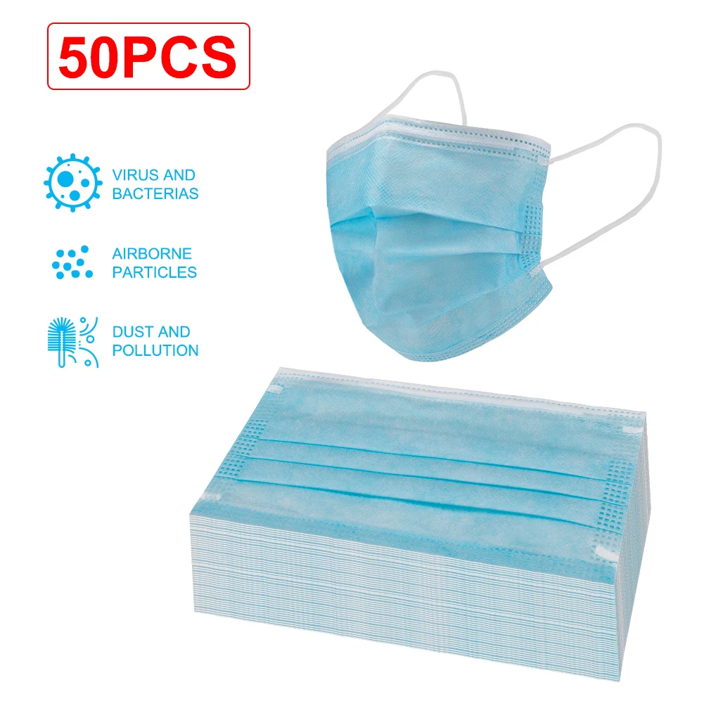 50 шт. одноразовая маска для лица Антивирусная маска 3-слойный фильтр для предотвращения бактерий гриппа велосипедная Пылезащитная маска в ассортименте