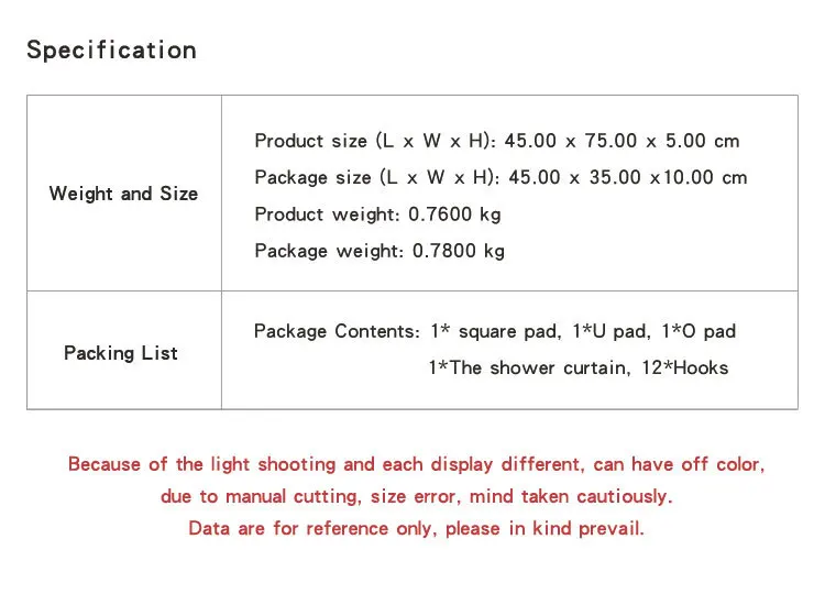 Обратите внимание: разные цены для разных комплектов, вы можете выбрать 4 шт./компл., включая 1 * занавеску для душа и 3 подушечки; Или вы можете выбрать 3 шт./компл., он включает 3 шт. подушечек, не включает занавеску для душа; или вы можете выбрать только 1 предмет занавески для душа. Пожалуйста, сверяйтесь с картинкой при оформлении заказа.