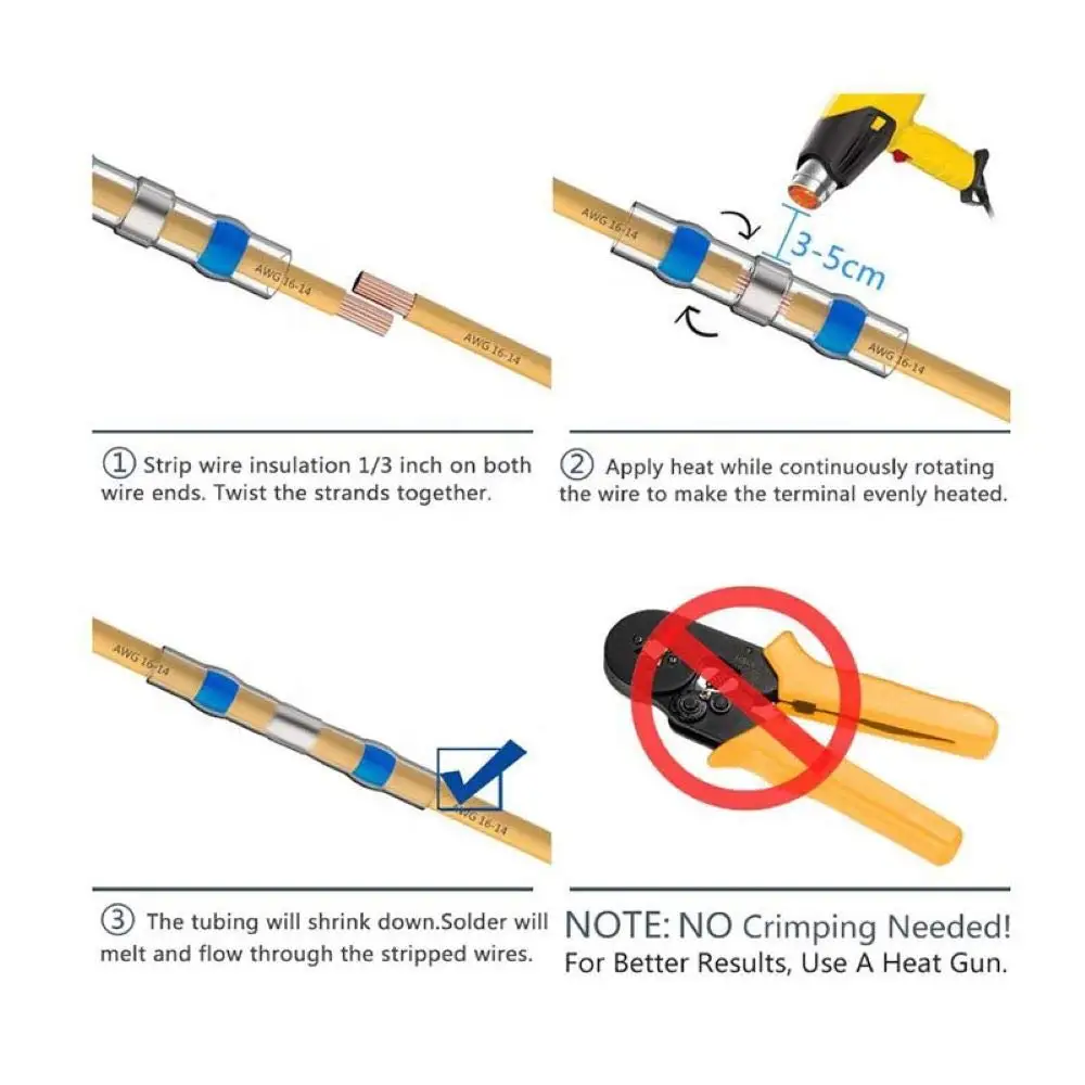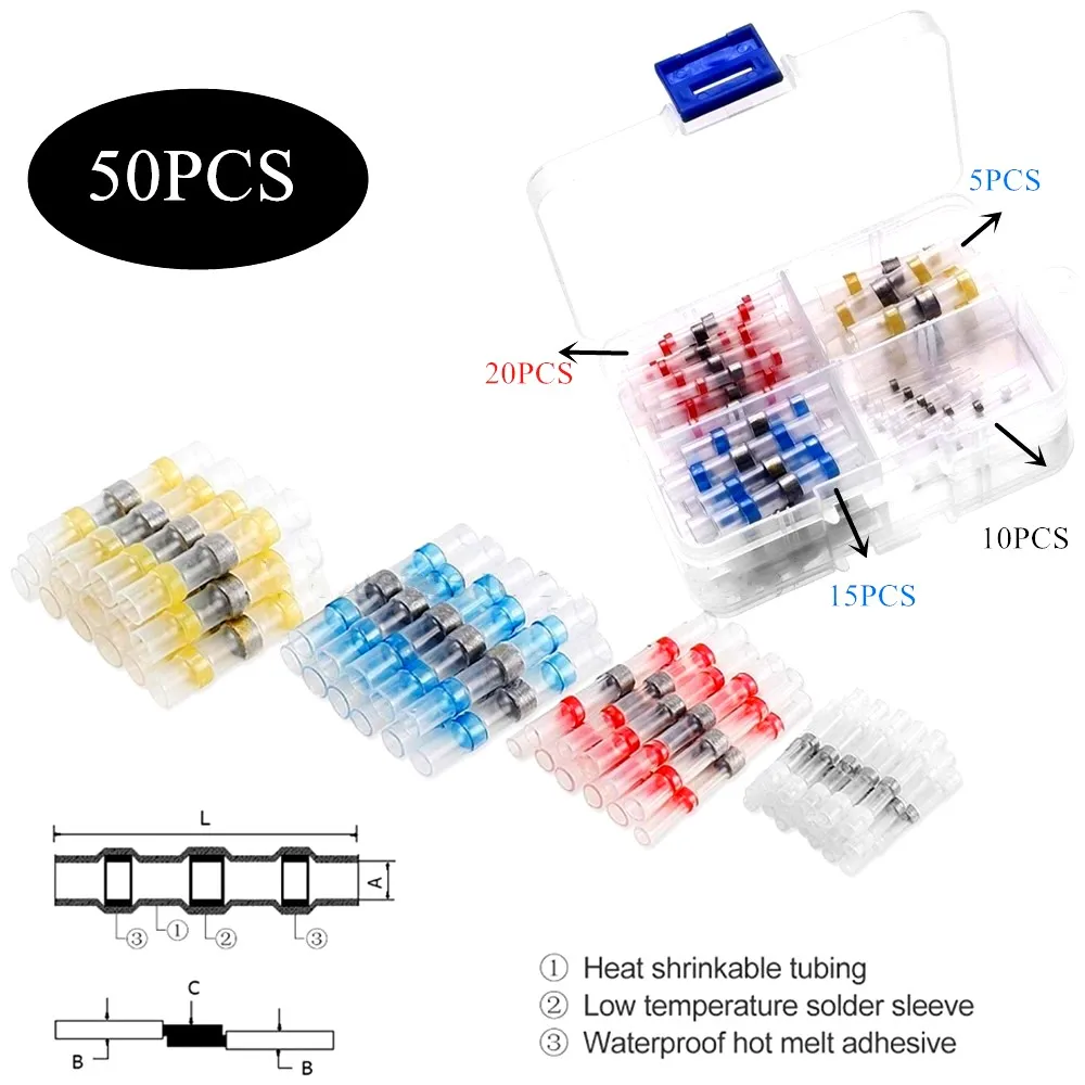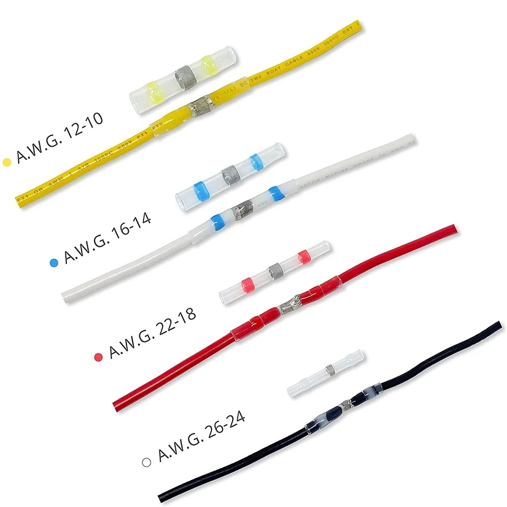 Термоусадочные Припоя: Белый: кабель костюма/размер провода 0,25-0.5мм ² 24-26 Красный: костюм кабель/провод Размеры 0,5-1.5mm площадью 18-22 Синий: костюм кабель/провода размера 1,5-2.5mm ² 16-14 Желтый: костюм кабель/провод Размеры 4,0-6.0mm ² 12-10 Минимальная температура усадки: + 70 °C Полная Температура усадки: + 110 °C максимум Рабочая температура: от-55 °C до + 125 °C Прочность на растяжение: 10,4 МПа Диэлектрическая прочность: 15 кВ/мм Спецификация производства: ISO9001 Воспламеняемость: огнестойкость Утверждения: Одобрено UL Поставляемый формат (круглый или плоский): продукт поставляется с круглым способом резки: ножницы или острый нож Материал: Полиолефин