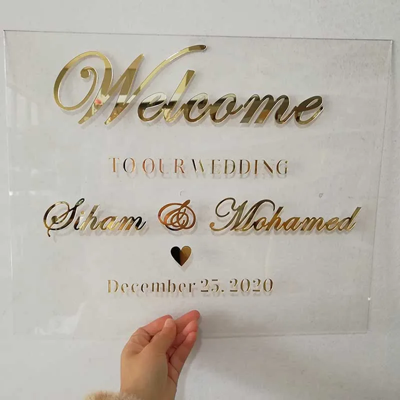 Свадебный знак, индивидуальный Золотой акриловый Свадебный знак, Вечерние Декорации, Современный Свадебный пользовательский акриловый знак, добро пожаловать на нашу свадьбу