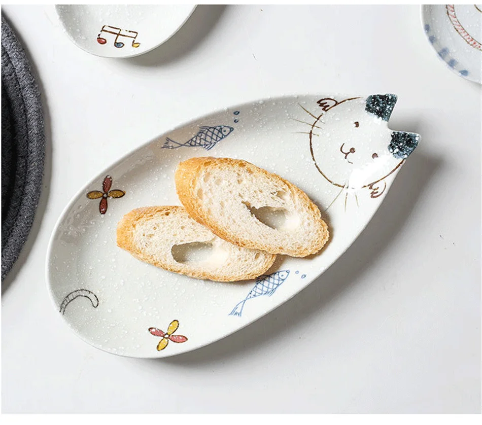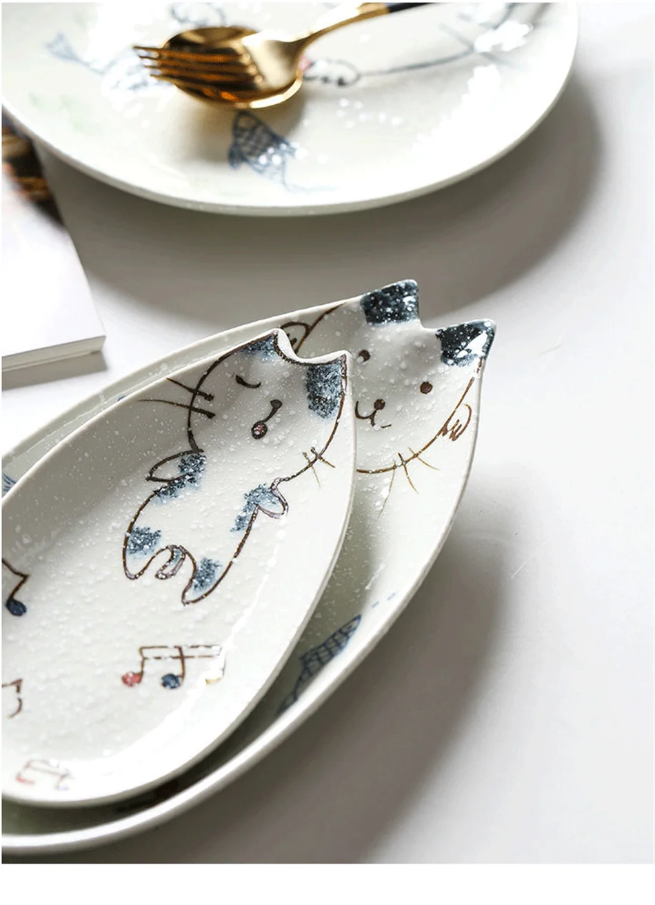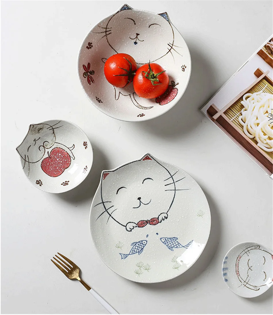 Керамическое зарядное устройство для кошки в японском стиле набор тарелок посуда с изображениями фруктов, креативный дизайн, Милая с изображением из мультфильма Lucky Cat