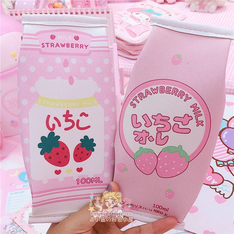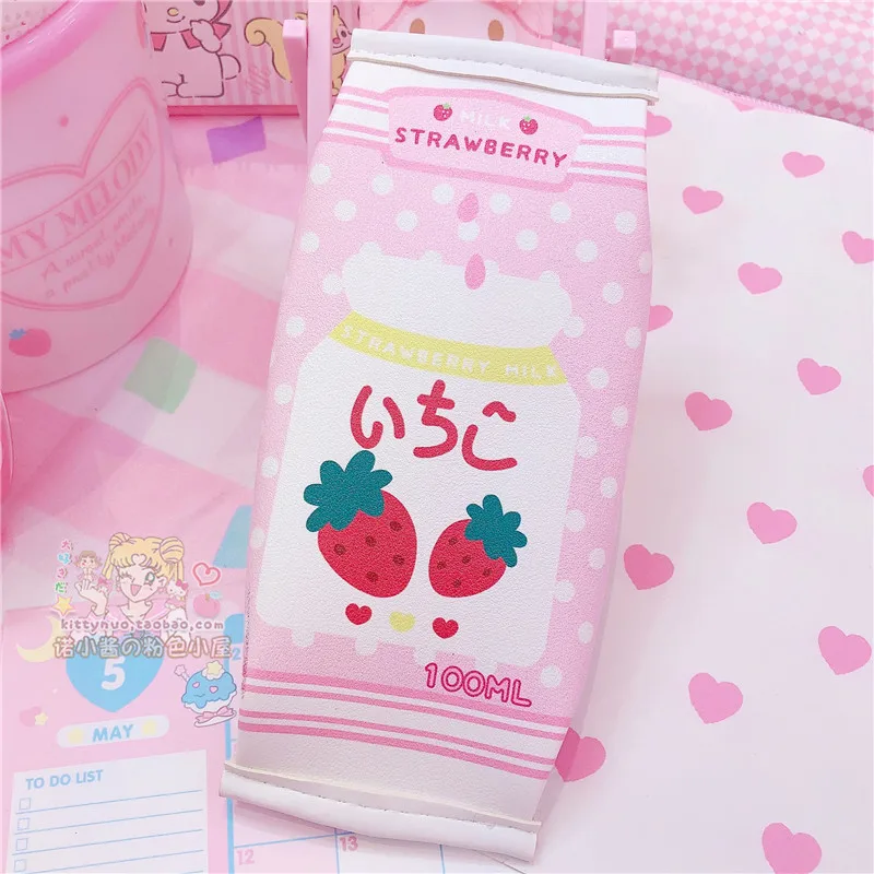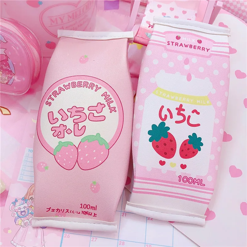 Милый чехол-карандаш из искусственной кожи с клубничкой, имитация молочной коробки, милый чехол кавайные канцелярские школьные принадлежности, подарок для детей