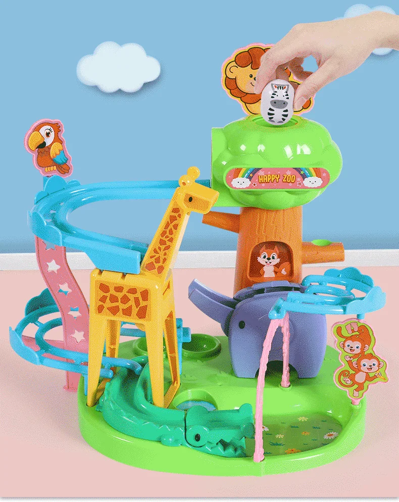 Красочный гоночный трек с яркими цветами Многие слайды животных могут двигаться, инерция делает мяч свободным, метод игры является новым и улучшает способность мышления ребенка. Основание трека имеет увеличенную конструкцию, которая стабильно поддерживается на земле, и маленький шар плавно скользит, чтобы предотвратить опрокидывание Применяется различный дизайн скольжения животных. Упражнение ребенка визуальная изоляция. Идеальный подарок для любого любимого животного Двойная скорость PK. Два маленьких мяча скручиваются вместе, ребенок может взаимодействовать с другими, усиливает способность общения в социальных сетях, добавляет удовольствия.