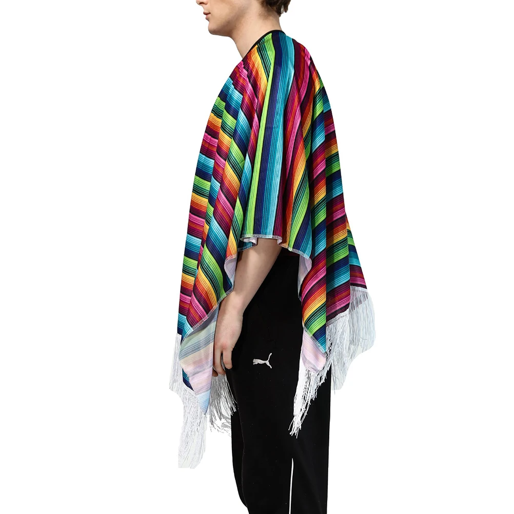 -Цвет: как показано. -Материал: полиэстер. -Размер: 135x50x0,2 см. -Стильные кисточки с бахромой. -Костюм на Хэллоуин, отлично подходит для любого маскарадного костюма, косплея, ролевых игр, вечевечерние. -Плащ в виде летучей мыши дизайнов-новая модная тенденция. -Обладает отверстием для головы, красиво облегает верхнюю часть тела. 1 х Мужской мексиканский плащ на Хэллоуин