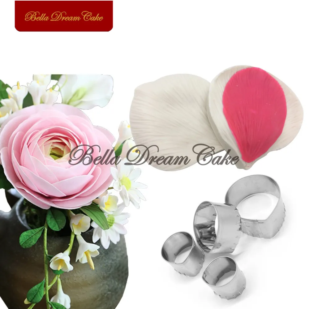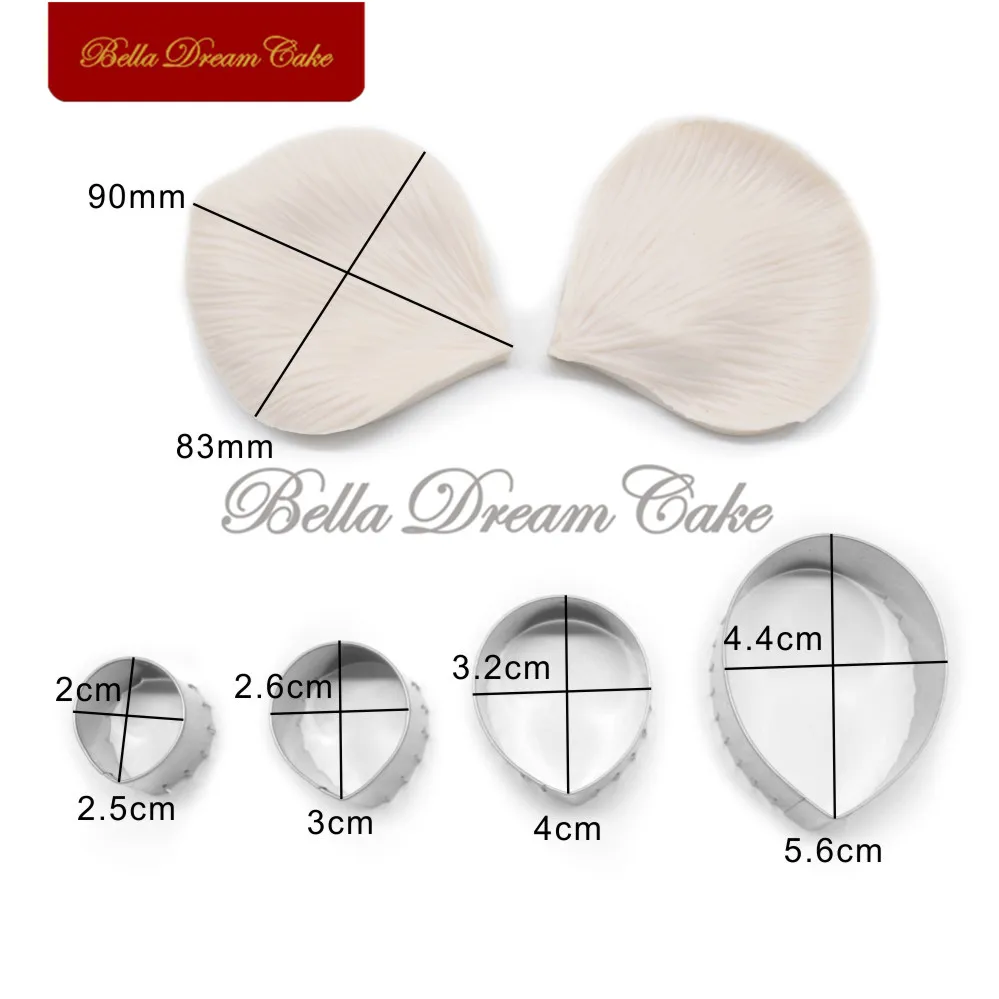 6pcs/set Rose Petal Veiner Silicone Molds Leaf Stainless Steel Cutter Mold Cake Decorating Tool Handmade Fondant Mould Bakeware