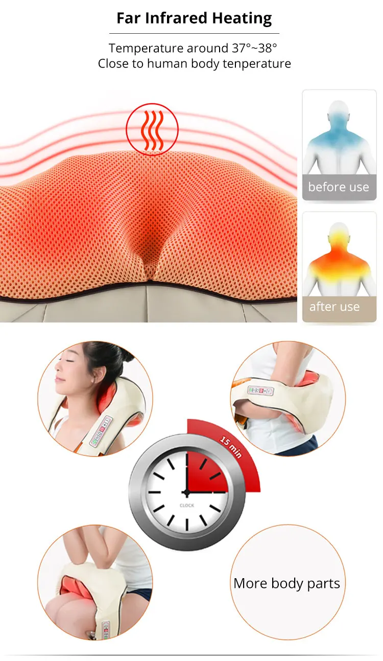 Особенности: 【Профессиональный Массажер шиацу 】-этот Массажер шиацу для шеи и плеч поставляется с 4 большими массажерами Головки и 4 маленьких, которые наносят глубокий тканевый массаж на шею, плечо, верхнюю часть спины, нижнюю часть Спина, талия, бедра, икры, ноги, ноги и руки области-помогая вашему всему телу части, чтобы снять стресс, снять боль Мышцы и помогут вам расслабиться. 【Advanced Функция нагрева 】-Электрический массажер для разминания имеет функцию инфракрасного нагрева массажа. Вместе с 8 массажными узлами, чтобы принять тепло, его можно использовать для снятия мышечной боли и напряжения после усталого дня. Просто включить/выключить его одним нажатием кнопки нагрева. 【Три интенсивности массажа 】-Этот массажер также оснащен 3 регулируемыми скоростями, чтобы настроить свой собственный стиль массажа: низкая интенсивность для нормального облегчения мышечной боли и расслабления; Средний и высокий для узких узлов, напряженных мышц и акупунктурных точек. 【Лучший выбор для всей семьи 】-материал по уходу за кожей премиум дышащая сетка и искусственная кожа, этот универсальный массажер хорошо работает как для пожилых, так и для молодых людей. Расслабьтесь с ним регулярно в течение 15-30 минут ежедневно, Он творит чудеса, помогая кровообращение и улучшая сон. Подходит для: 1. Почти все взрослые имеют опыт боли в спине и шейки матки, что связано с изменением окружающей среды, жизни и рабочих привычек. 2. Подходит для длительного использования ручного и компьютерного персонала. Такие как: водители, офисный персонал, ИТ и т. Д. 3. Подходит для талии, плеч, шеи и других связанных частей людей часто болит. 4. Подарки для покупателей. Примечание: 1. Пожалуйста, протрите массажер аккуратной и мягкой влажной тканью, чтобы сохранить массажер чистым. 2. Пожалуйста, не массируйте те же области вашего тела в течение более двух последовательных циклов (полчаса), потому что трение может повредить вашу кожу. 3. Пожалуйста, проконсультируйтесь с профессиональным врачом перед использованием массажера, если у вас есть проблемы с здоровьем (такие как сердечные болезни, миалгический encephalopathy, фибромиалгия). Посылка включает в себя: 1 х разминающий Массажер для плеч -1 шт. зарядное устройство для автомобиля-адаптер 1 x Мощность адаптер 1 х оригинальная подарочная коробка