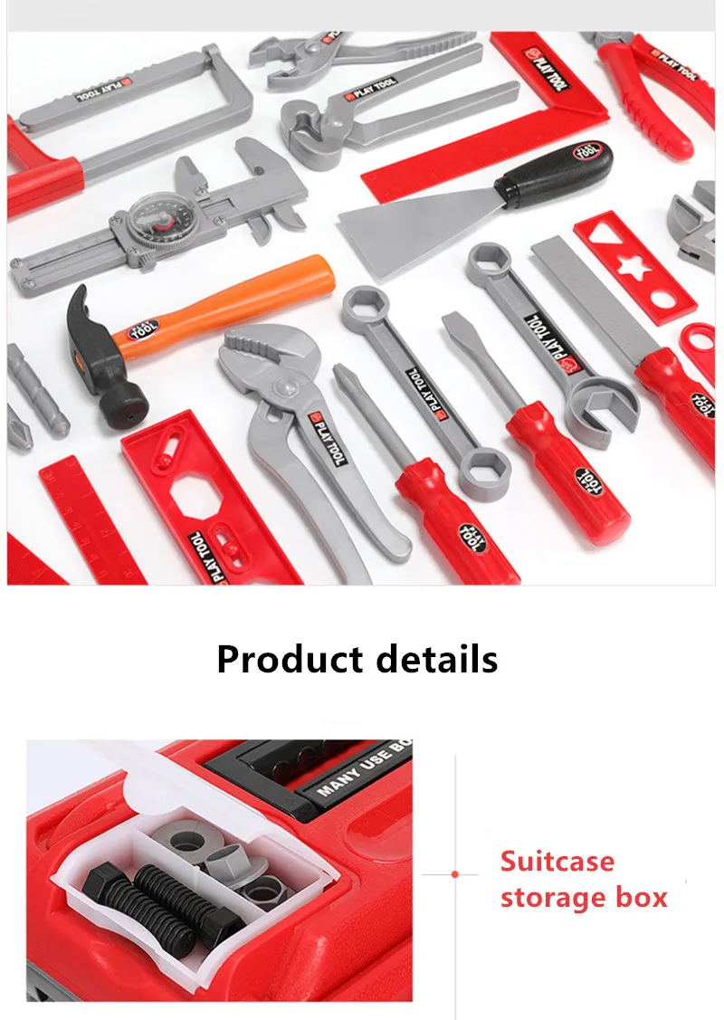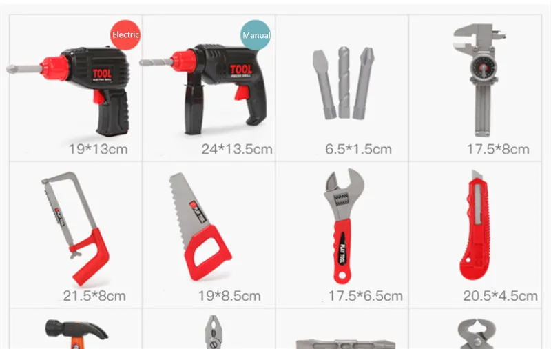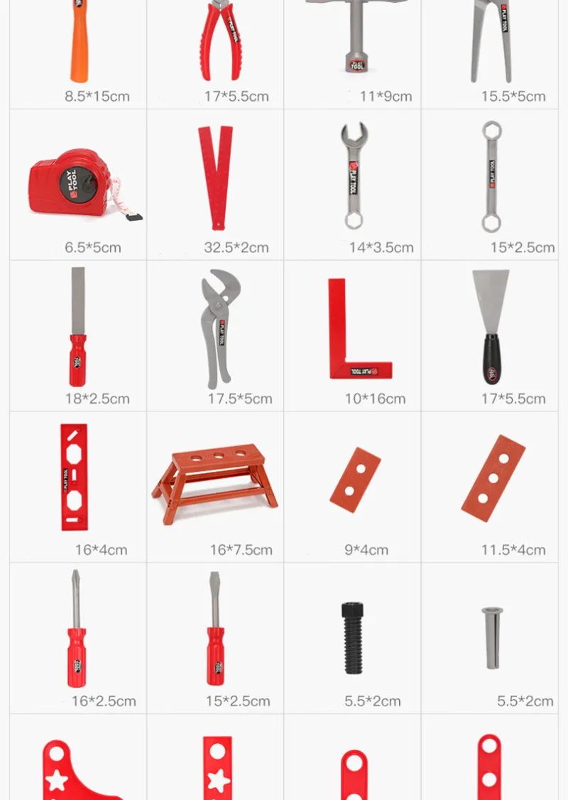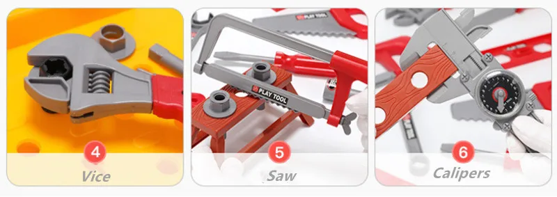 Features: safety simulation tools: hammer, screwdriver, wrench, helmet, etc.