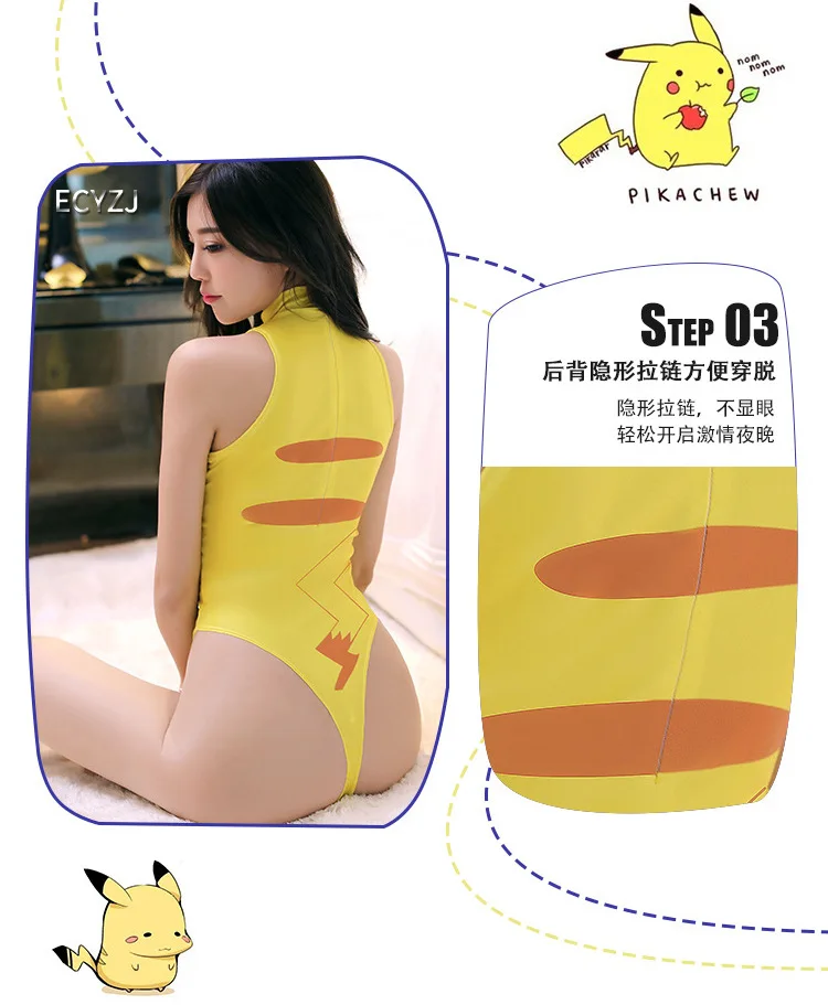 Милый сексуальный костюм Пикачу для девочек, костюм аниме Покемон, карнавальный костюм, цельный летний купальник, вечерние подарки