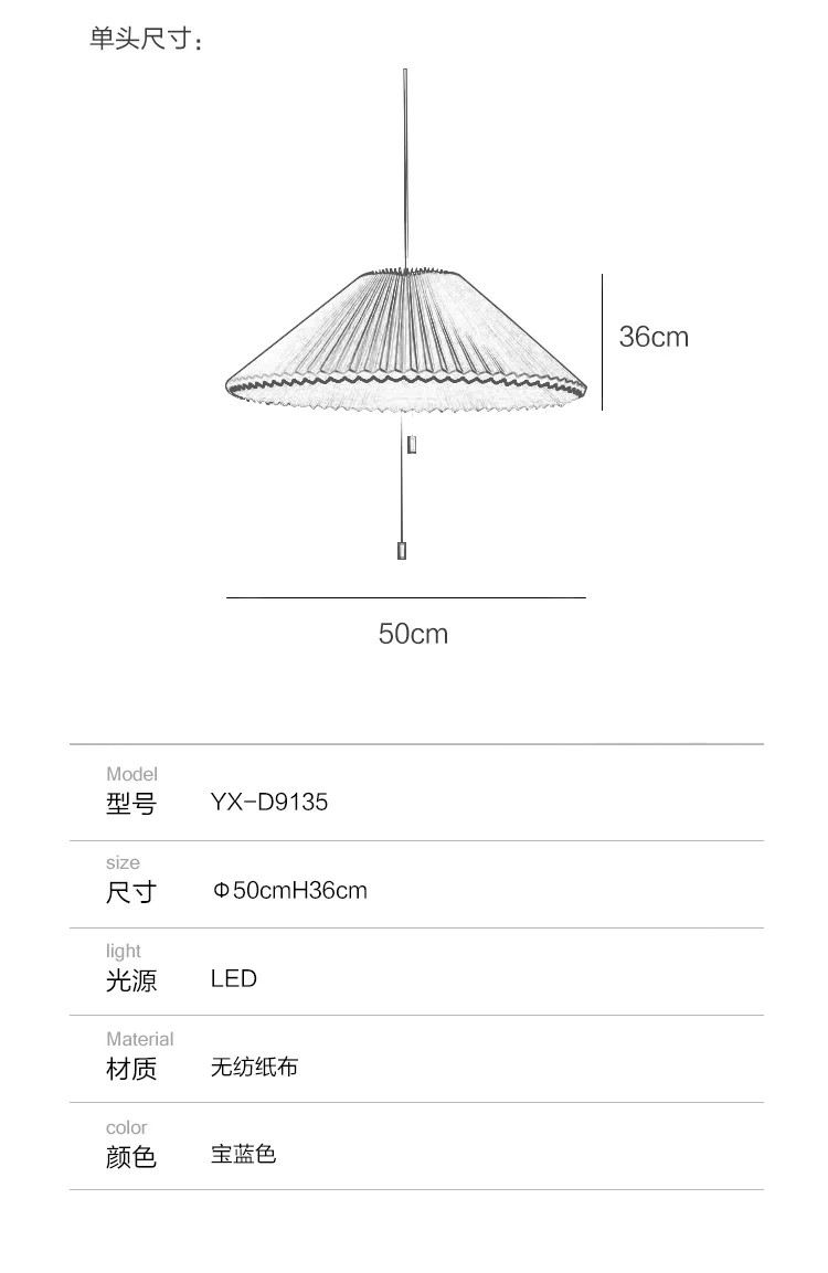 1.Item Type: LED Pendant Light 2.Material: Fabric 3.Size: Open Lampshade: 78cm - 90cm Close Lampshade: 53cm - 90cm 4.Base Type: LED ( Note: Includes bulb ! !! !! ) 5.Body color: Light Blue , Deep Blue 6.Voltage: AC90-260V ( suitable for all countries ! !! !! ) 7.Application: Hotel, Restaurant, Bar, Lobby, Office, Living Room, Dining Room etc.