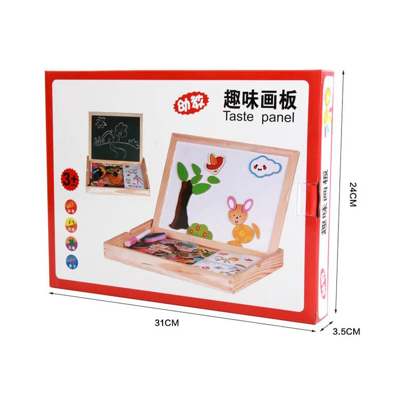 Многофункциональность для развлечения и обучения-дети могут писать или рисовать по обеим сторонам деревянной доски маркерами и мелками; Или играть красочные деревянные магические головоломки с обеих сторон