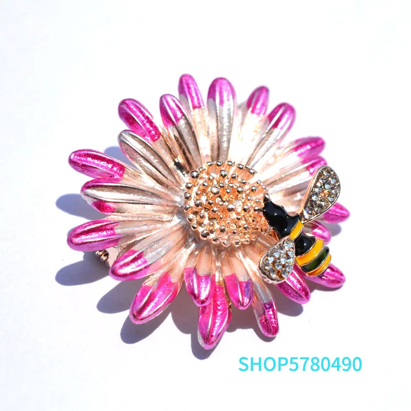 Модные ювелирные изделия, милая пчела, брошь из горного хрусталя, Женская окрашенная брошь на груди, цветок, розовый цвет, одежда для женщин, аксессуар для платья для вечеринки Размер высота 37 мм ширина 38 мм толщина 13 мм