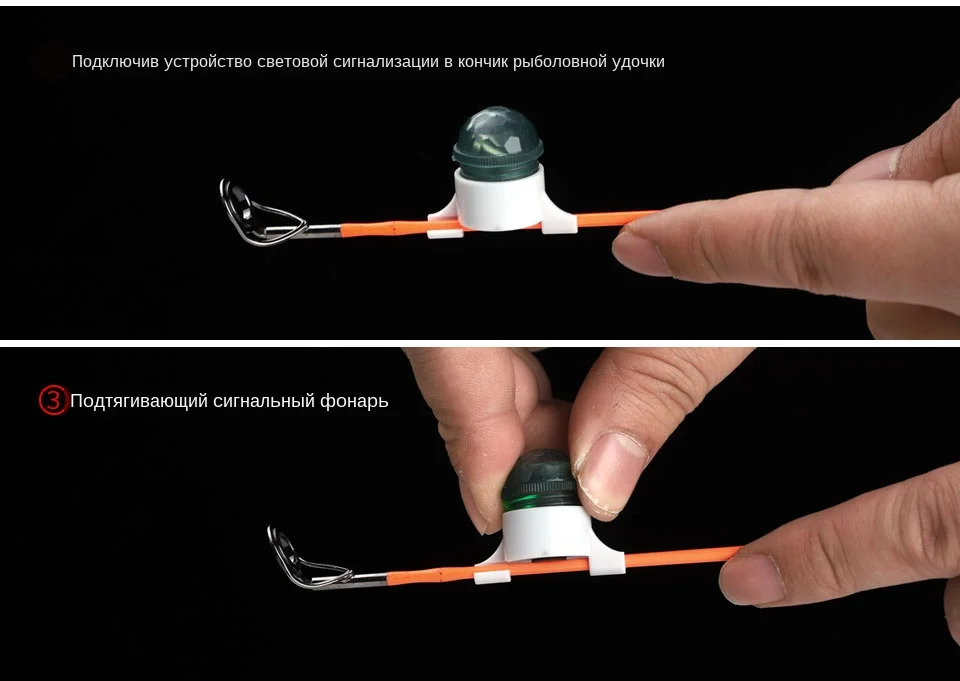 2.Inserting the alarm light into the tip of the fishing rod