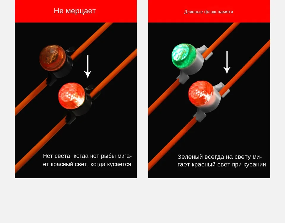 + Not flash:No light when there is no fish,flahsing red light when biting