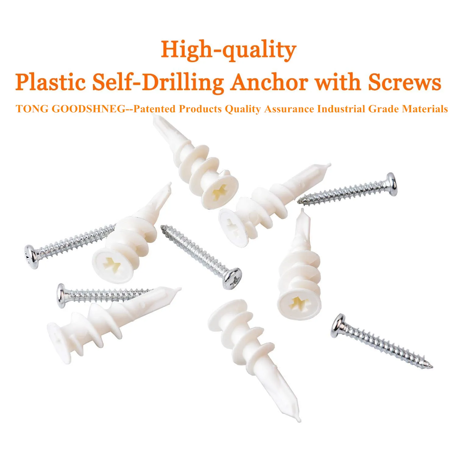 Анкеры для гипсокартона пластиковые самосверлящие полые стеновые анкеры с комплектом винтов (13x42 мм)