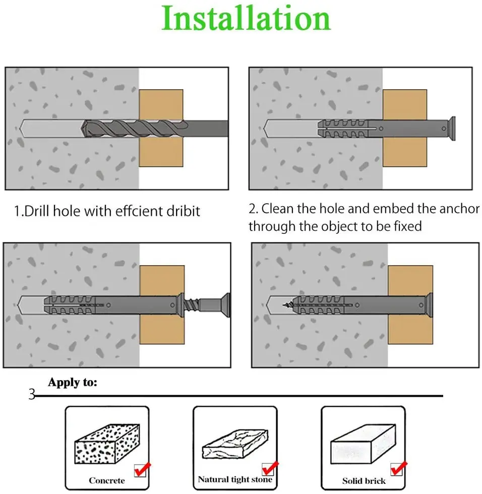 ☀☀[Материал высокого качества] Пластиковые (нейлон) анкеры для гипсокартона и оцинкованные винты обеспечивают длительное использование. Нейлоновый материал высокого качества и защиты окружающей среды: Гипсокартон имеет принцип крепления резьбы, прочно склеивает и выдерживает сильную нагрузку. Экологически чистые материалы используется для много лет без загрязнения окружающей среды. ☀☀【Комплект включает 】 12 шт. 13*42 мм пластиковые анкеры с 12 панорамными винтами 12 шт. 15*33 мм пластиковые анкеры с 12 панорамными винтами Упакованы в изящную пластиковую коробку, их удобно вынимать и хранить. Хороший ассортимент коробки с этикеткой спецификации для повышения эффективности вашей работы. ☀☀【Широкое применение 】 Подходит для ручных или электрических инструментов для вкручивания в гипсокартон на низкой скорости. Но может также использоваться для легкого бетона, пустотелых кирпичей, пористых кирпичей, кирпичей из известкового песка и других мягких материалов. ☀☀【Обратите внимание 】 Невозможно прикрутить электрическими инструментами на высокой скорости, Поскольку электроинструменты вращаются слишком быстро, а нагрев приведет к размягчению пластика. Когда винт прикручен к концу трубки, винт проникнет в трубку и протолкнет кончик хвостовика, чтобы открыть. Это нормальное явление, только благодаря этому он может быть более плотно встроен в гипсокартон.
