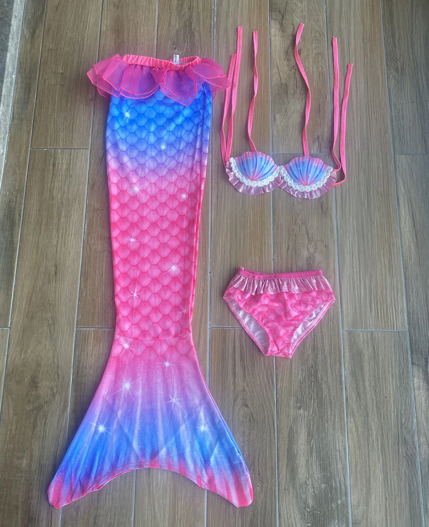 Посылка: 3:1 * хвост русалки + 1 * бюстгальтер + 1 * шорты + 1 * монофин + 1 * головной убор + 1 * ожерелье (всего 6 шт.)