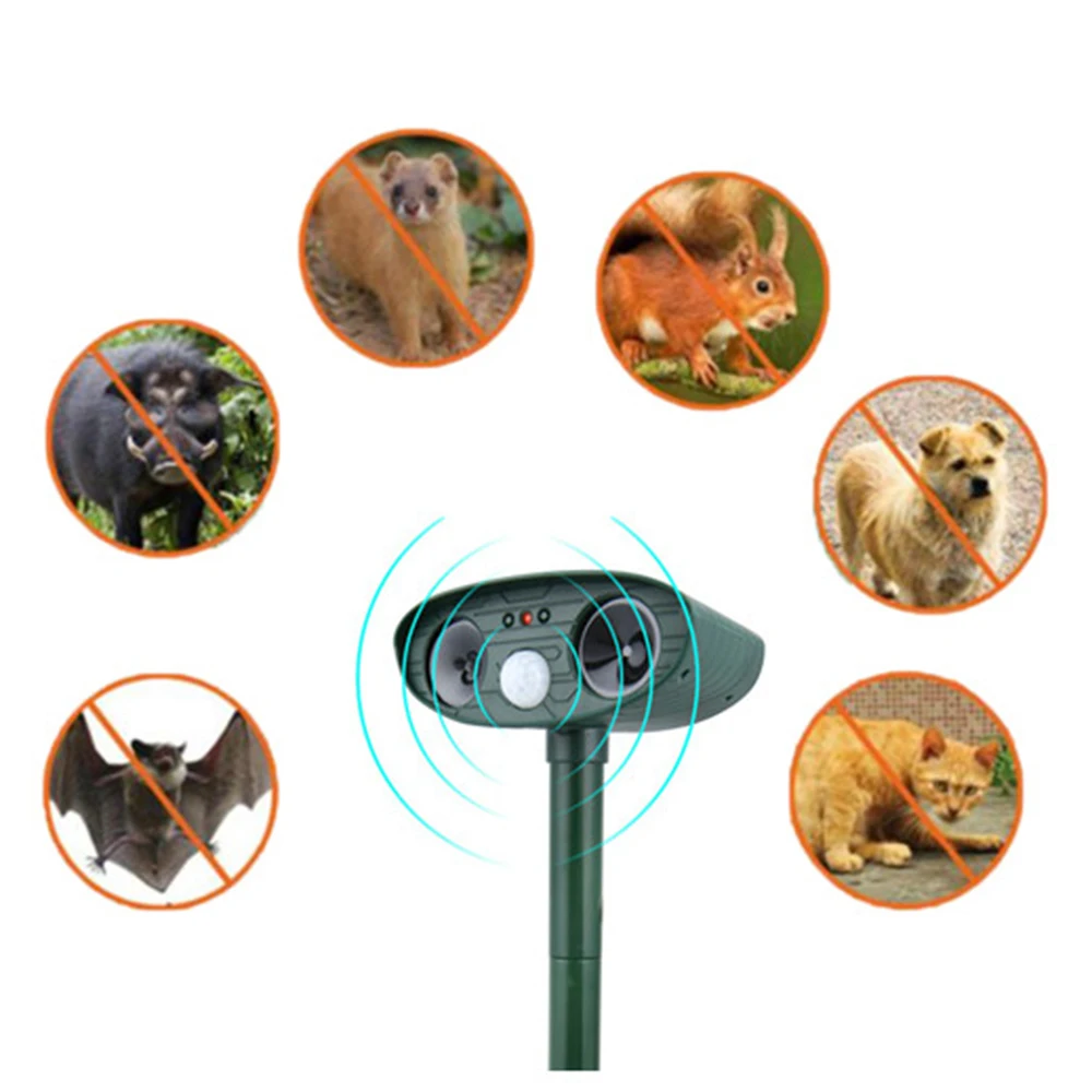 Уличный Ультразвуковой Отпугиватель вредителей на солнечных батареях, отпугиватель мышей для животных, PIR сенсор, садовая птица, кошка, собака, лисица, отпугивает животных