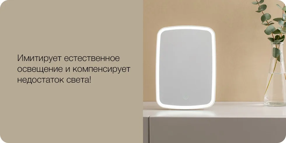 Зеркало работает без проводов от литиевого аккумулятора емкостью 1200 мАч, обеспечивающего продолжительный срок автономной работы. С таким зеркалом Вы сможете устроить персональную гримерку в любом помещении.