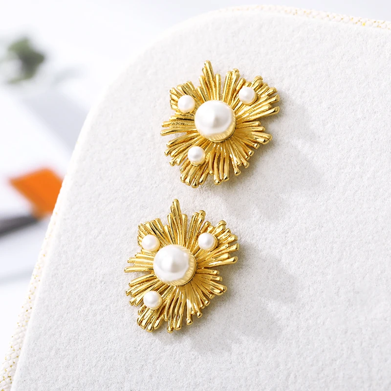 Серьги с золотым подсолнухом, неровность, циркон, кристалл, Сияющий жемчуг, серия Han, благородные качества, женские модные украшения, подарки