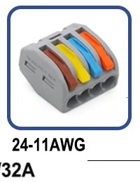 Размер твердых проводов (BV,BVR) 0,08-2,5 мм ^ 2 18-12AWG
