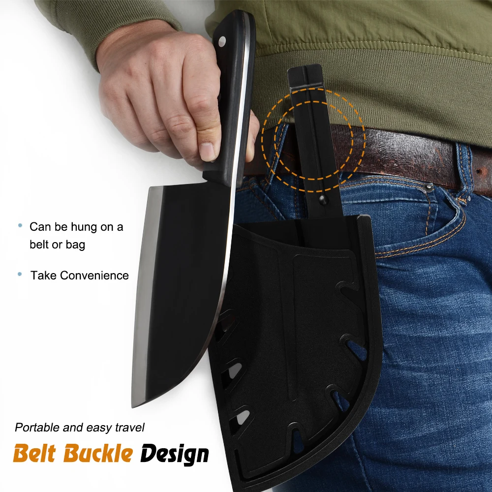 Создан с помощью карабина с крышкой для ножа, который предотвращает выпадение ножа. Эти опушкой идеально подходят для 6,5 дюймов китайский нож мясника.