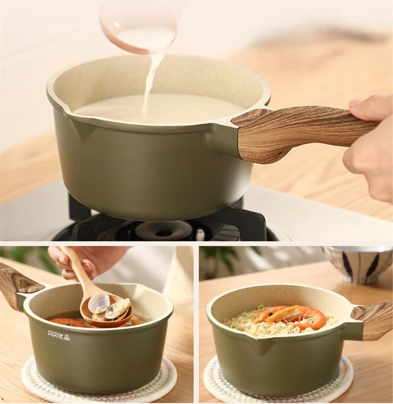 Этот небольшой горшок изготовлен из алюминиевого сплава, с композитным дном, бакелитовой ручкой и покрытием камня maifan, который не будет прилипать к кастрюле. Подходит для приготовления детского питания, молока, лапши и других мелких продуктов. Как индукционные, так и газовые плиты универсальны.