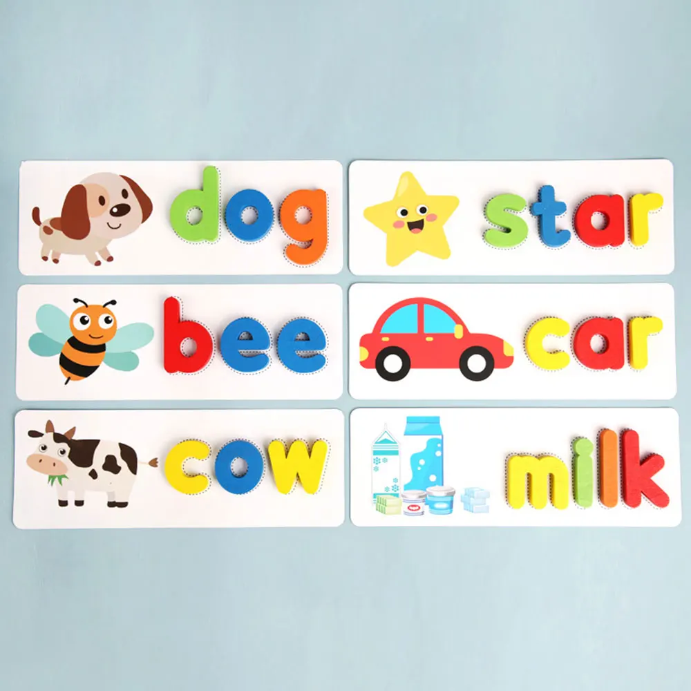 -Детям понравится сортировать деревянные буквы и положить их на карточки, чтобы образовать слово! Этот набор развивает лексику чтения зрения, распознавание букв, орфографические навыки, стимулирует мелкую моторику. Это легкая и захватывающая игрушка, с которой могут играть сразу несколько детей, помогая им развить важные профессиональные навыки.