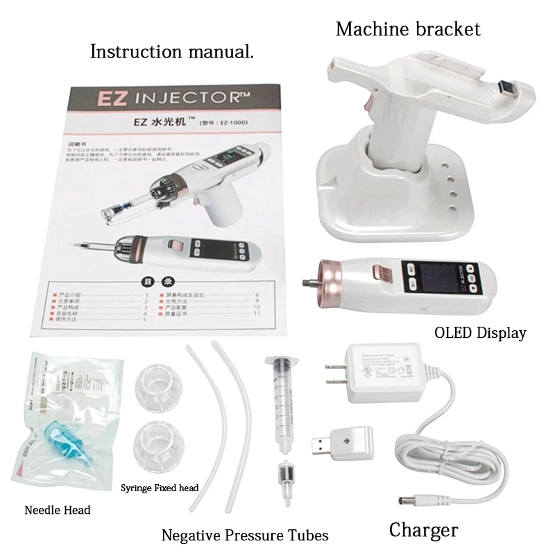 4mm EZ Mesotherapy Gun Negative Pressure Meso Gun Hydrolifting Water Injection for lip lifting Needleless Microcrystal Injection