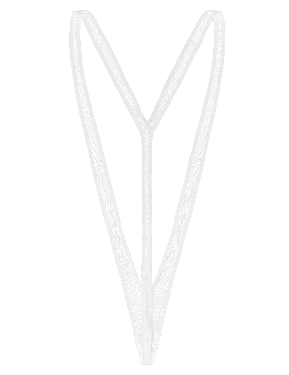Прозрачная в крупную сетку дизайн, глубокая v-образная форма спереди, стиль без подвешивания, забавная плотная посадка, надежная застежка.