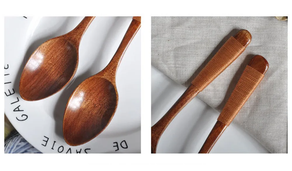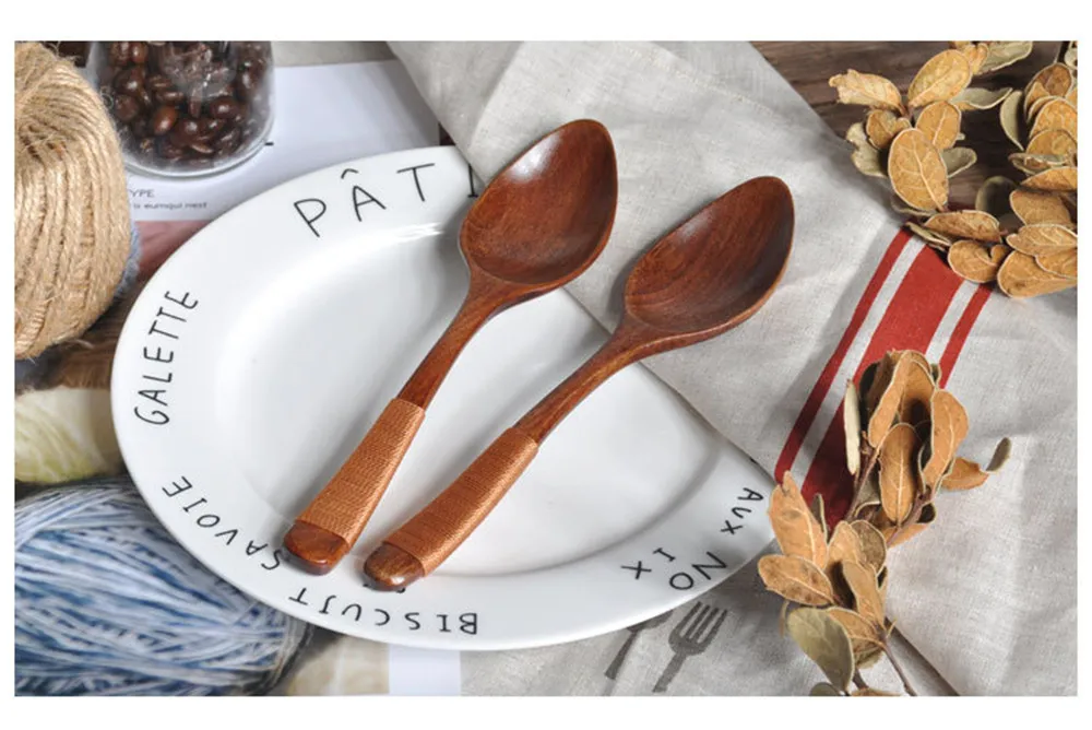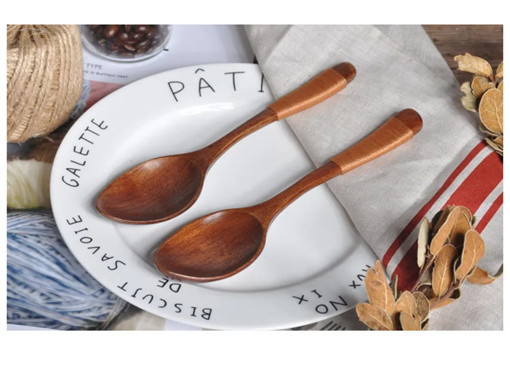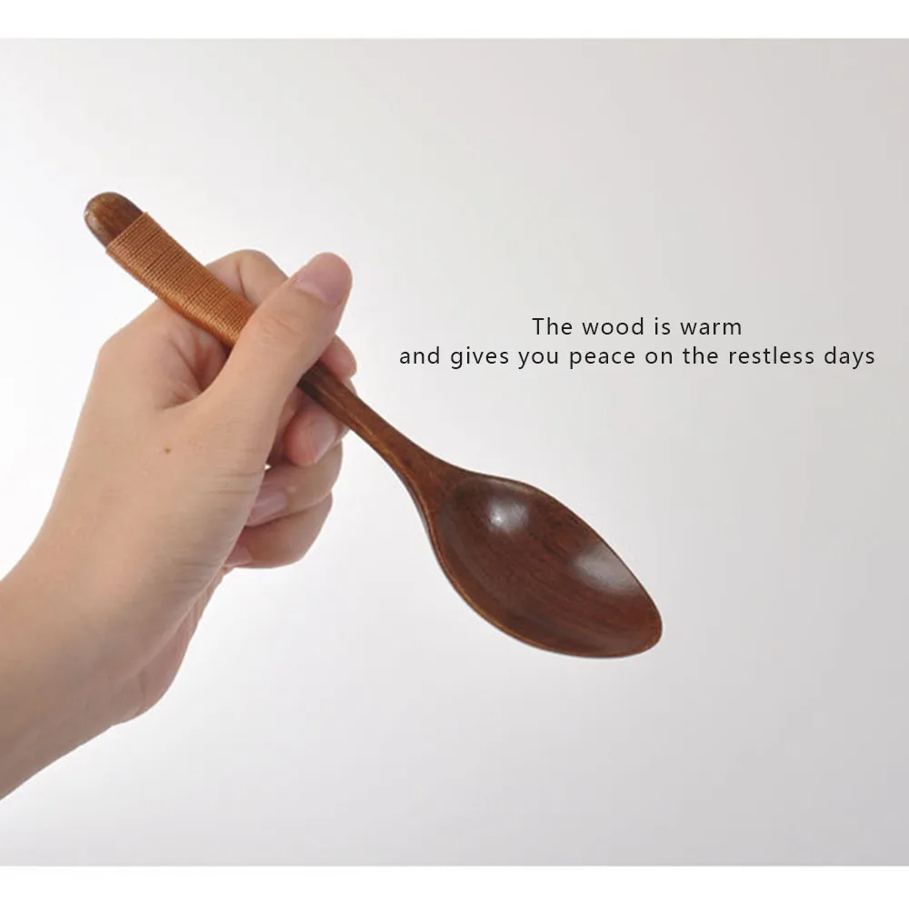 Wooden Spoon Fork Bamboo Kitchen Cooking Utensil Tools Soup-Teaspoon Tableware