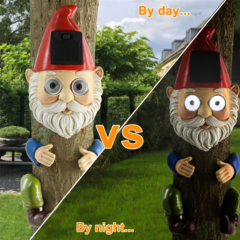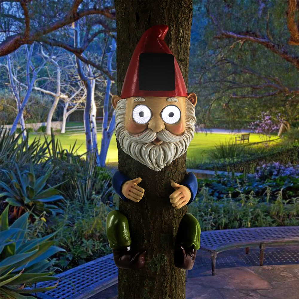 Украшения для дерева, сада, солнечного гнома, украшения для дерева, уличная скульптура из полирезины, скульптура из водонепроницаемого гнома, скульптура из смолы, легко устанавливается, поставляется с винтами, чтобы повесить на дерево