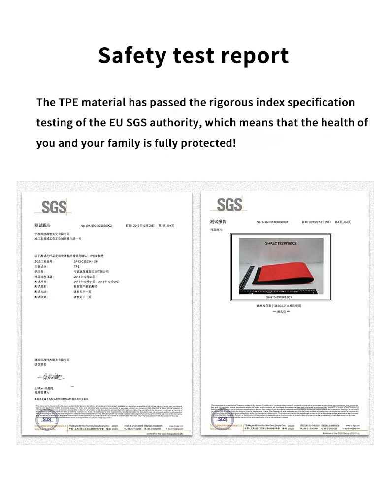 2. Безопасность и экологичность: Изготовлен из сертифицированного SGS натурального безвкусного экологически чистого ТПЭ, этот материал пригоден для переработки, разлагается, нетоксичен и не имеет запаха, поэтому он безвреден для вас.