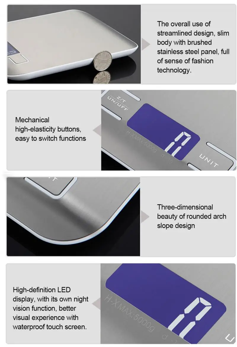 Показания веса отображаются в пяти различных режимах: g,kg,oz,lb,mike ml, вы можете свободно переключаться, нажав кнопку.