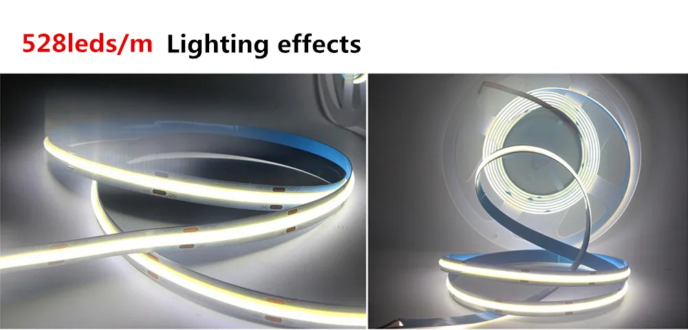 Гибкий COB светодиодный ленточный светильник высокой плотности без пятен 320/384/528 светодиодов/м линейный ленточный светильник теплый белый/естественный белый/белый DC 12V 24V