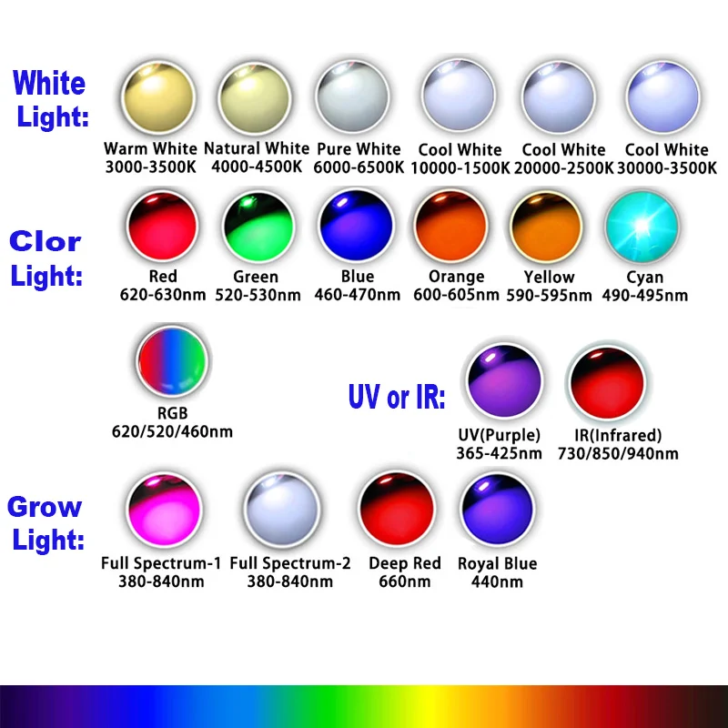 High powerLED Diode 440nm 660nm 380-840nm White green yellow amber UV 395NM IR-730NM 850NM 940NM 1W3W5W 2-2.4v For DIY Spotlight Downlight