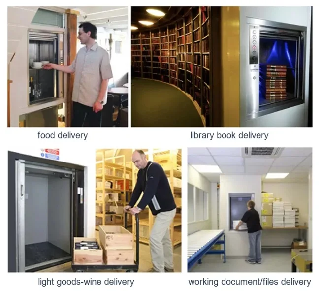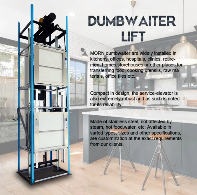 Кухонный лифт для еды широко используется в кухонных ах, офисах, больницах, клиниках, домах для отдыха, складах или других местах для передачи продуктов питания, кухонной утвари, сырья, офисных файлов и т. д. Пищевой элеватор с компактным дизайном, Сервисный элеватор также чрезвычайно прочный и как таковой отмечен своей надежностью; Изготовлен из нержавеющей стали, не подвержен воздействию пара, горячей пищи, воды и т. Д. Управляется тяговой машиной. Каждый этаж с одной встречной посадкой.