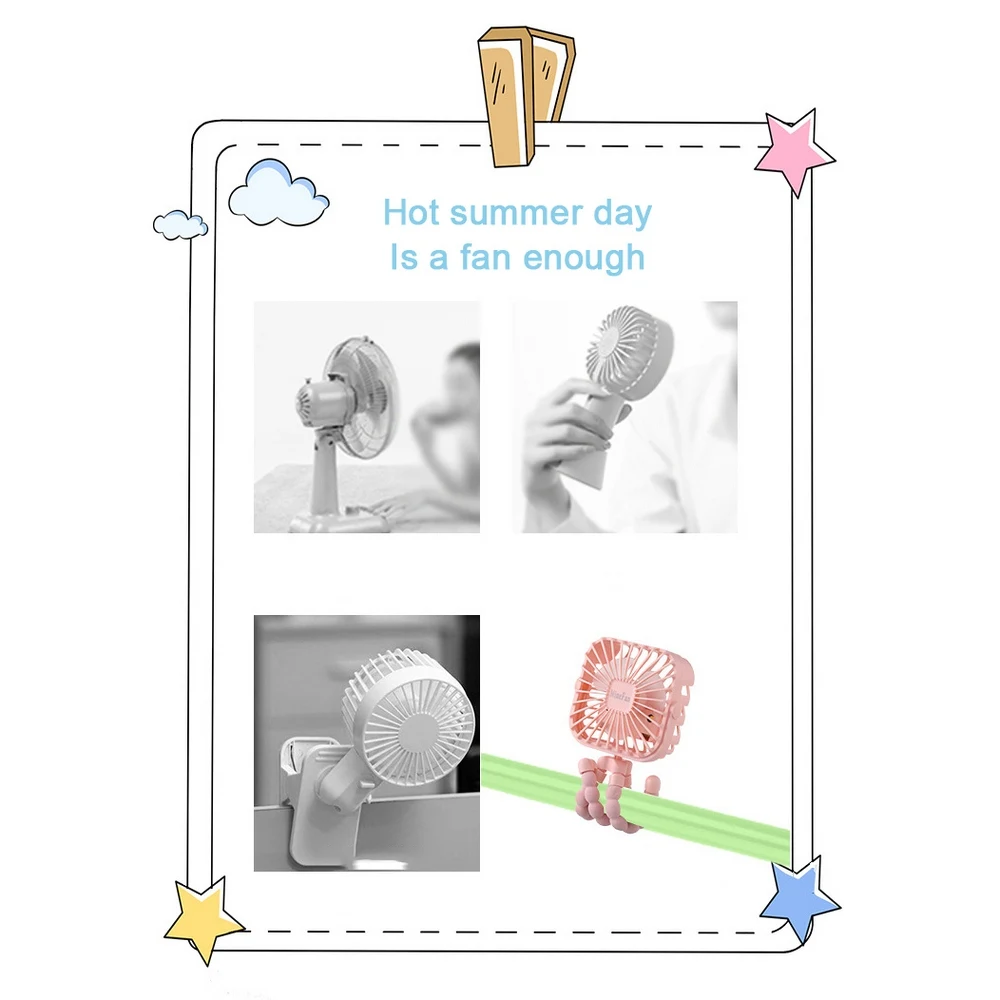 2. Multifunctional and portable: This portable baby leg has flexible legs, which allows you to fix the fan of the stroller, car seat, and crib to keep you and your baby cool. It can also be used as a desktop fan or hand fan.