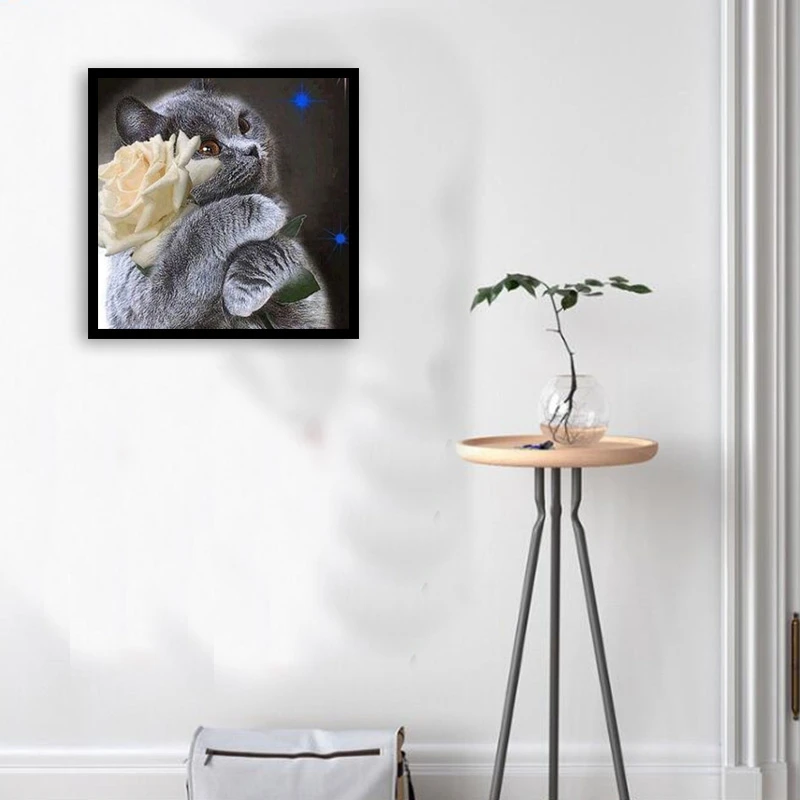 DIY картина с животными, вышивка крестиком, полная круглая вышивка с котом и цветами, стразы