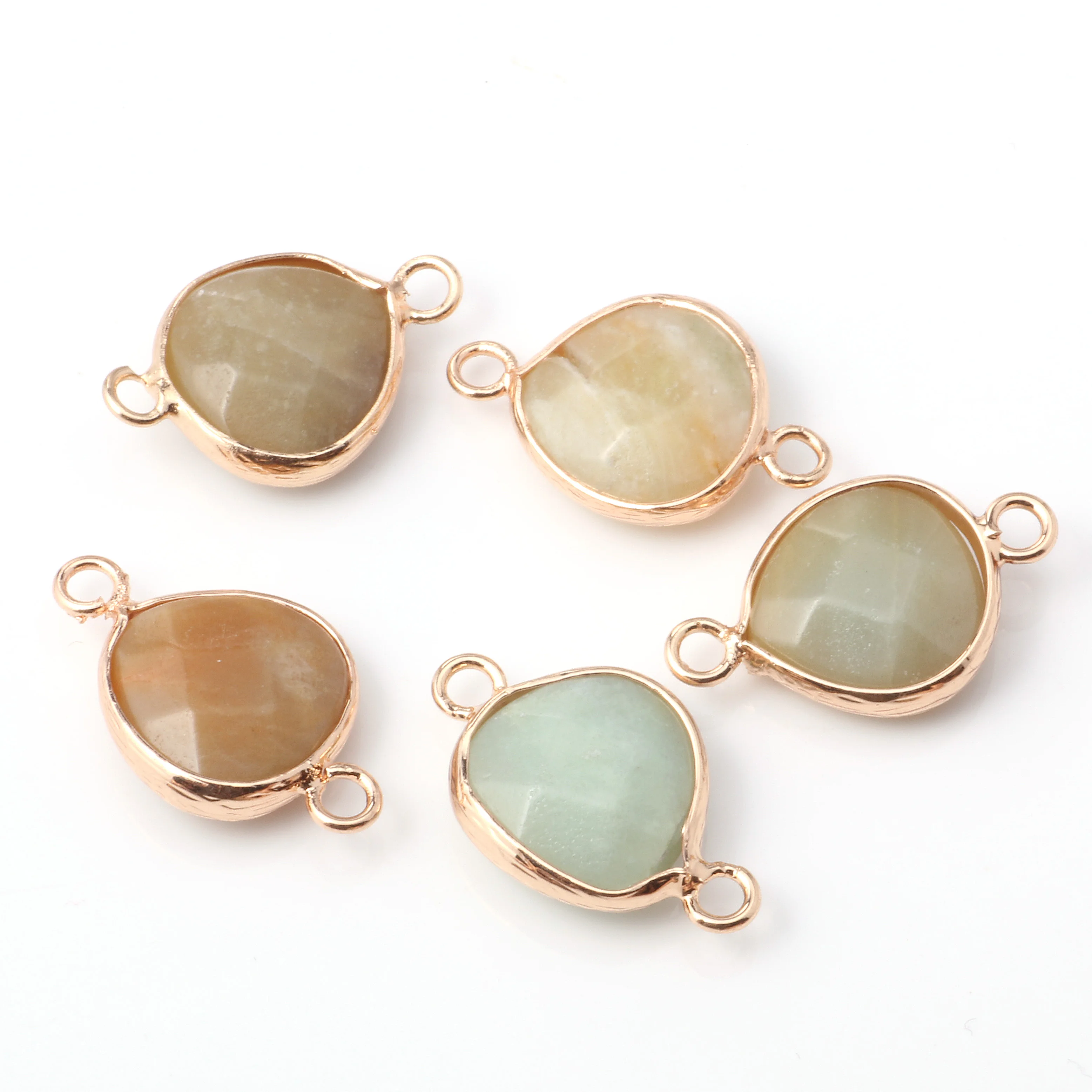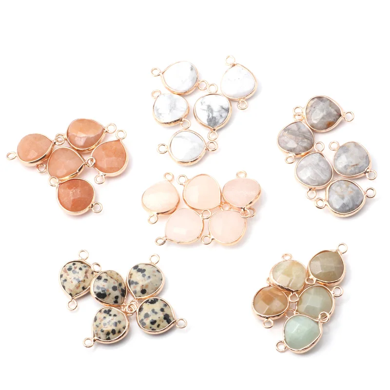 2 шт. в форме капли, ограненный природный камень, ручная работа, двойное отверстие, шармы-соединители, подвеска для DIY, ожерелье, браслет, ювелирное изделие, подарок