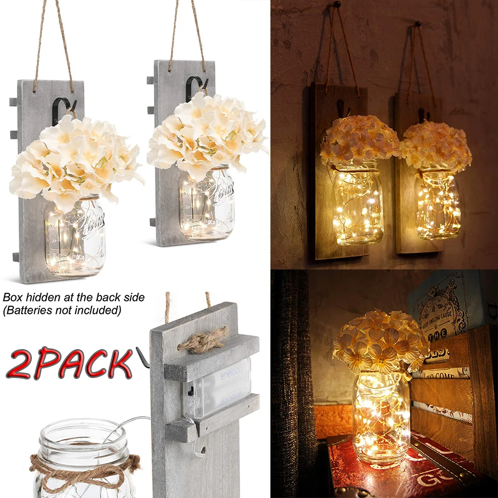 2 шт./упаковка, бра в виде каменщика, настенные Бра В рустикальном стиле, домашний декор из кованого железа, крючки, шелковая Гортензия и Светодиодная лента для украшения дома