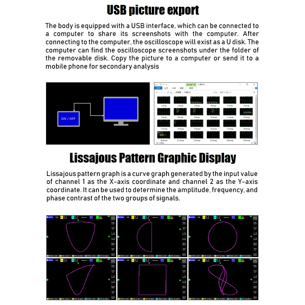 Оснащен интерфейсом USB, который может быть подключен к компьютеру, чтобы поделиться скриншотами с компьютером, что удобно для вторичного анализа.