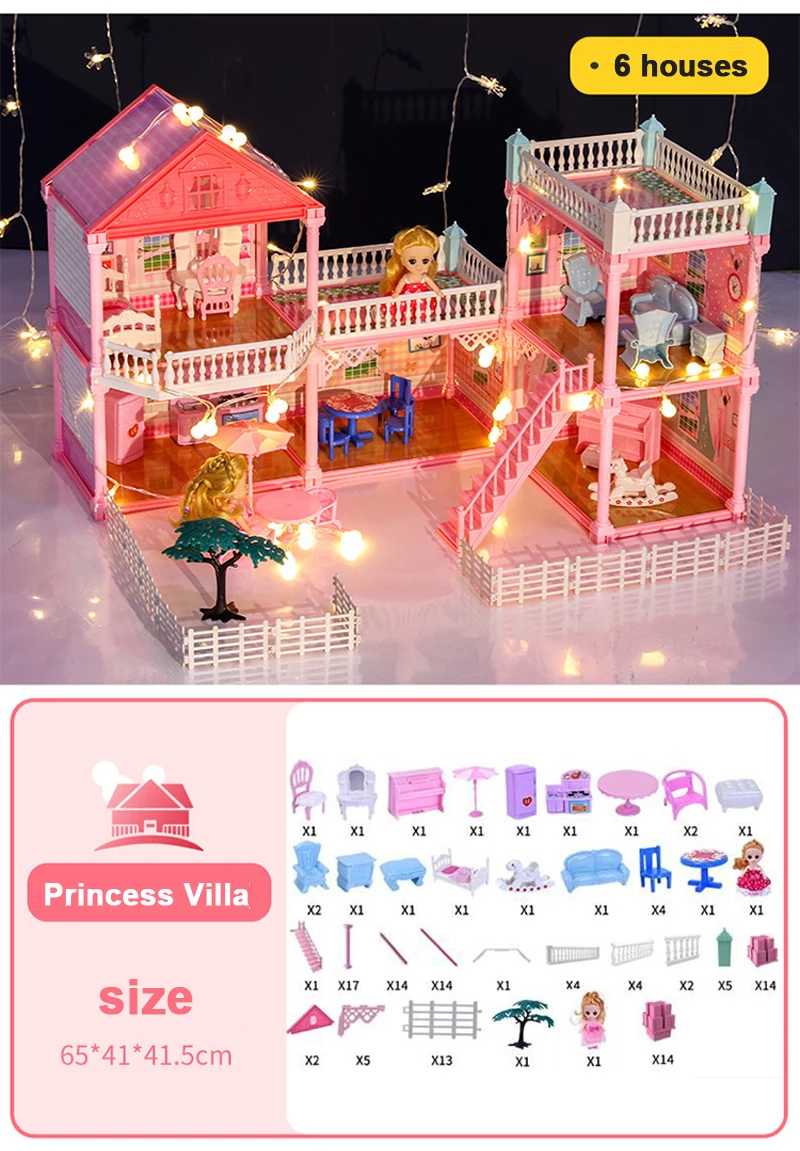Кукольный домик ручной работы, замок «сделай сам», миниатюрный кукольный домик, подарки на день рождения, развивающие игрушки, кукольная вилла, игрушка для девочек