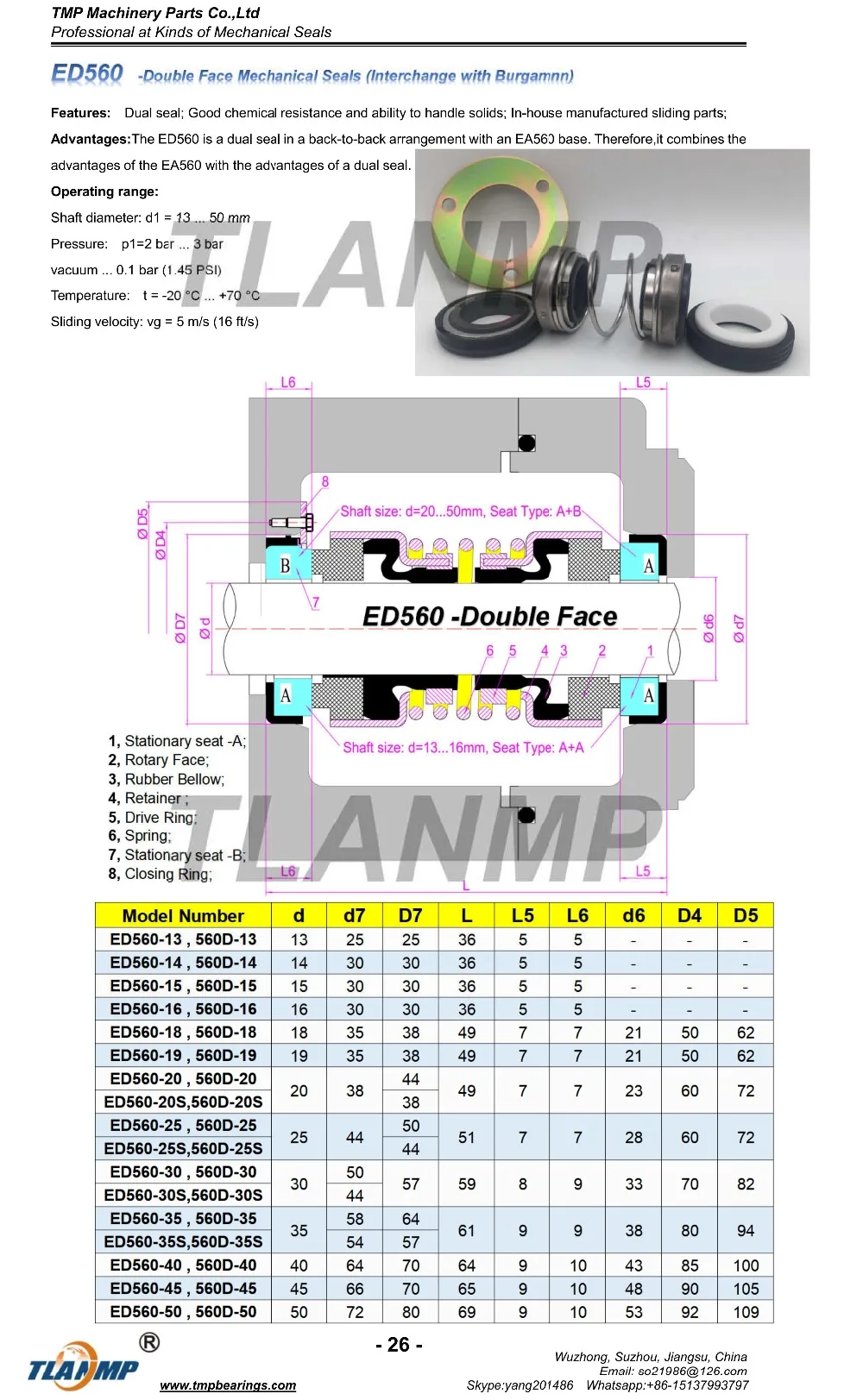 Сменные уплотнения для ED560 / 560D (размер вала 50 мм)
