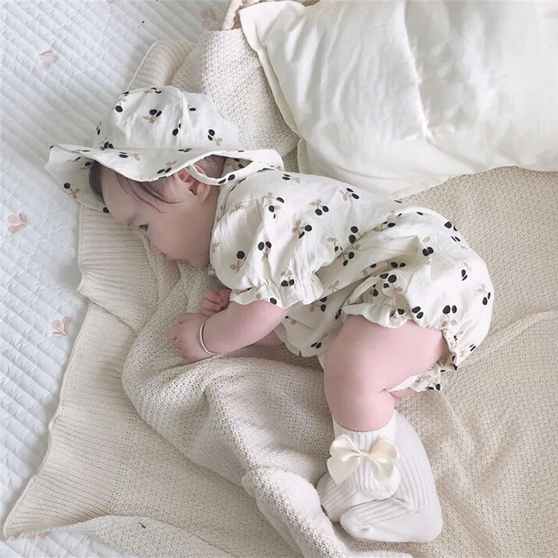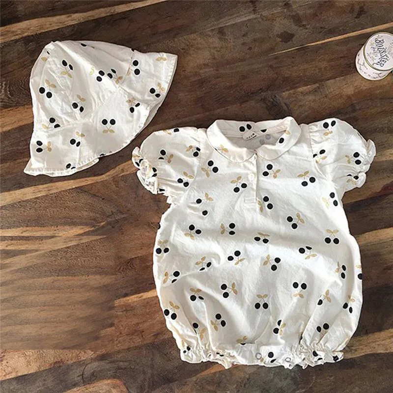 Одежда для новорожденных мальчиков и девочек; Летний комбинезон с короткими рукавами и принтом; Комбинезон; Боди с шапочкой; Комплект из 2 предметов