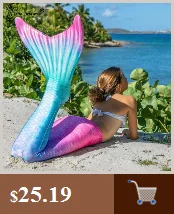 Карнавальный костюм для девочек Купальник, хвост русалки, комплект из 3 предметов с моноластами, Пляжное бикини Флиппер детей Купальный костюм для плавания одежда Комплекты для купания