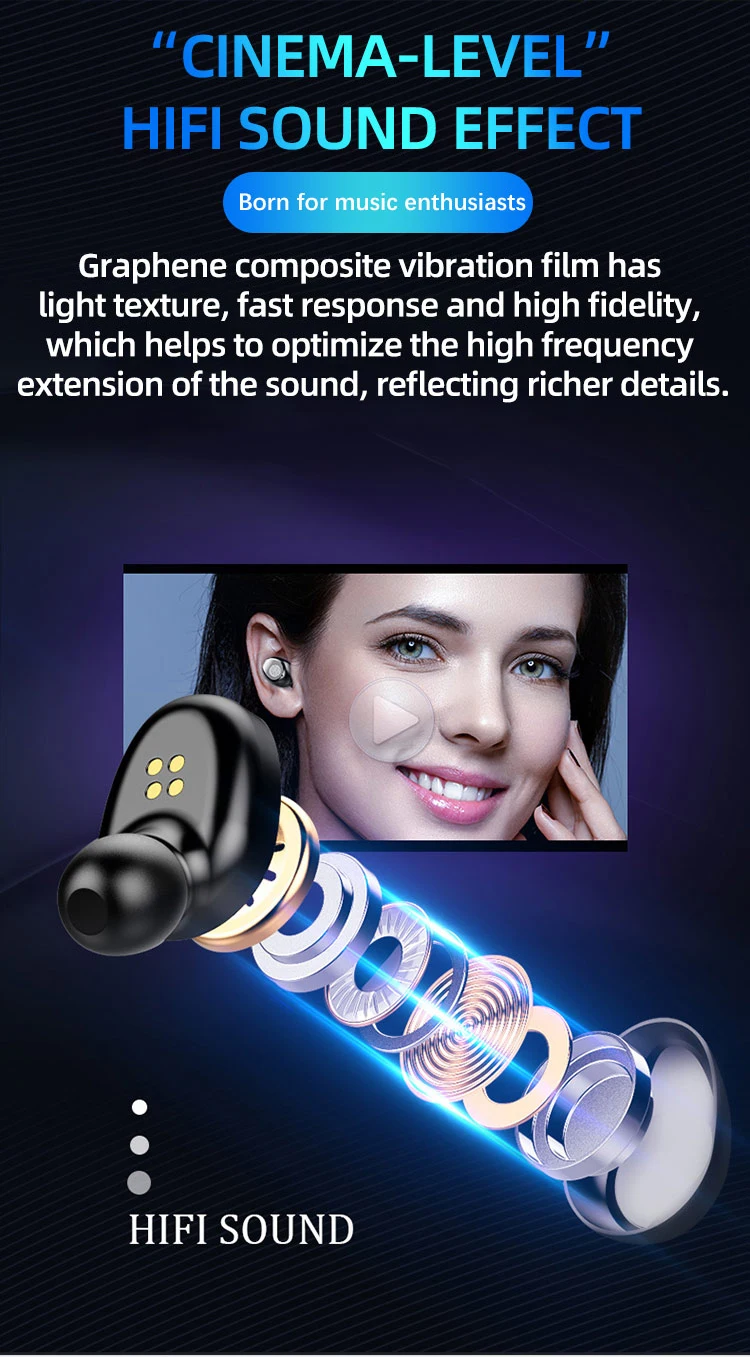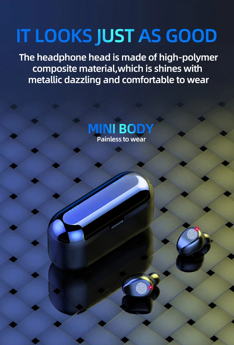 Описание расстояние более 10 метров и время использования 4-5 часов 1. Беспроводные bluetooth наушники 2. Светодиодный цифровой дисплей двойного громкости 3. Интеллектуальное сенсорное управление без сжатия (воспроизведение/пауза, ответ/отключение, переключение музыки) 4.Bluetooth 5,0 5. Быстрая зарядка с 4 контактами 6.Hifi Качество звука 7.может использоваться в качестве держателя телефона 8.HD голосовой помощник 9. Светильник весом 10. Интеллектуальное шумоподавление 11. Удобный и безболезненный к уху светильник, вес, отсутствие давления, отсутствие вреда для слуховой способности 12. Водонепроницаемый и устойчивый к поту, высокая выносливость