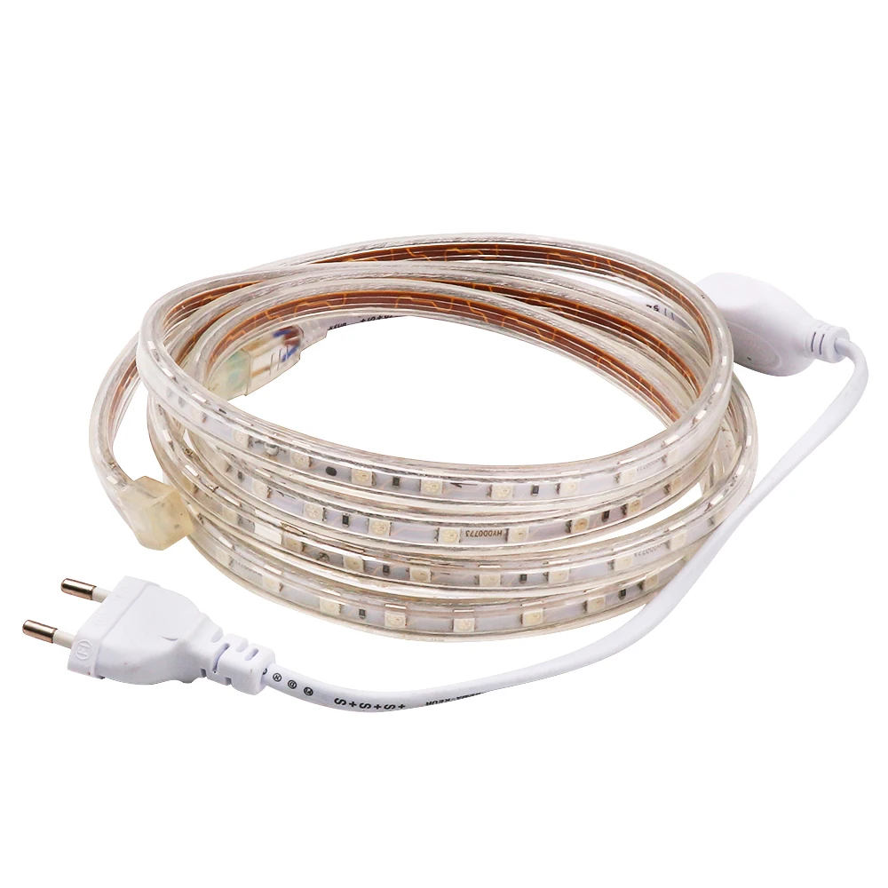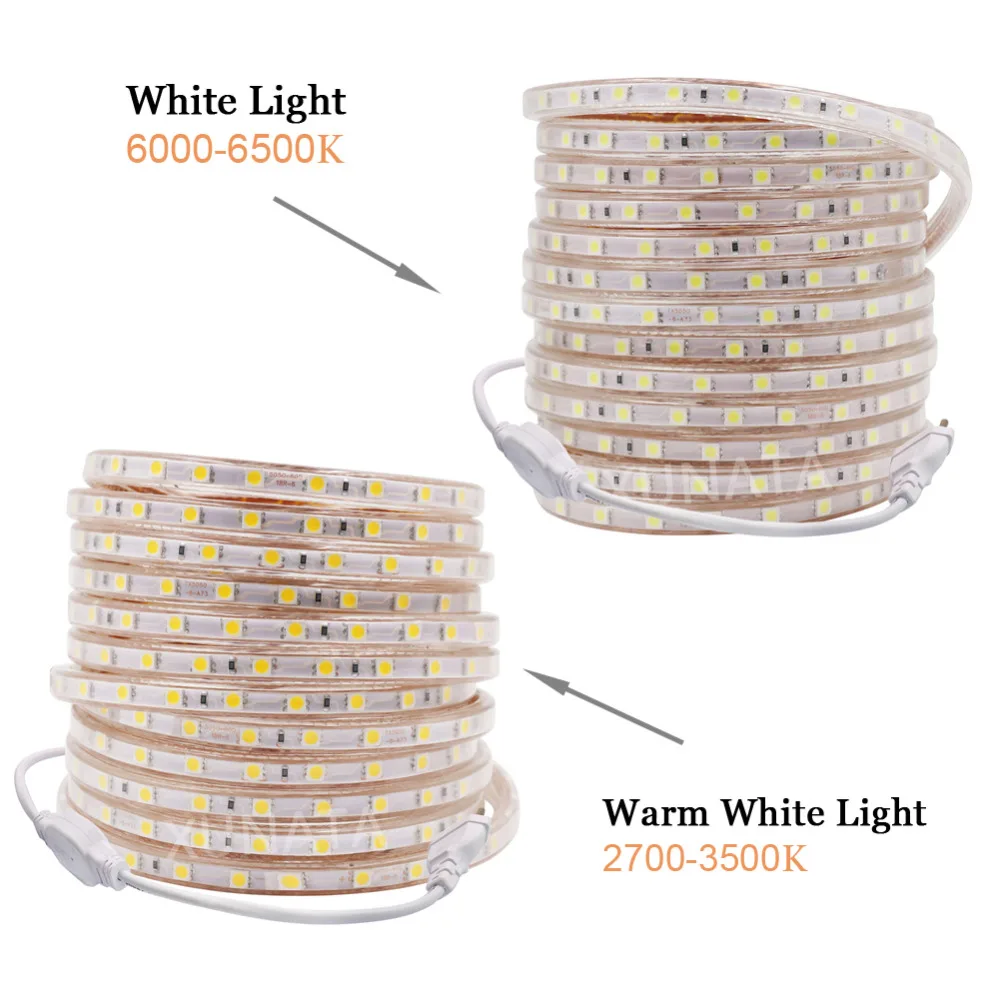 1) Led type: 220V / 230V / 240V SMD 5050 dimmable led strip 2) PCB Width: 6mm4) Size: W10mm X T 7mm5) Emitted Color: White/warm white/blue/green/red/yellow 6) LED Quantity: 60 leds / Meter 7) LED Chip Type: High brightness 5050 SMD8) Input Voltage: AC220-240V9) Protection Rate: Waterproof IP6710) Working Tempreture: -20 ~ 60 degree