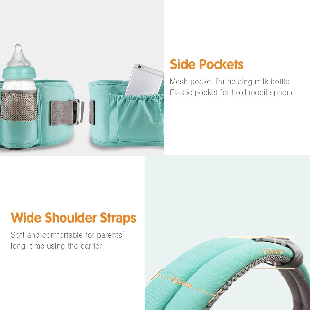 Подходит для плеч и живота: широкие и мягкие плечевые ремни делают его более комфортным для родителей. Толстая и эластичная внутренняя подкладка для рассеивания силы талии, она может плотно прилегать к животу родителей.